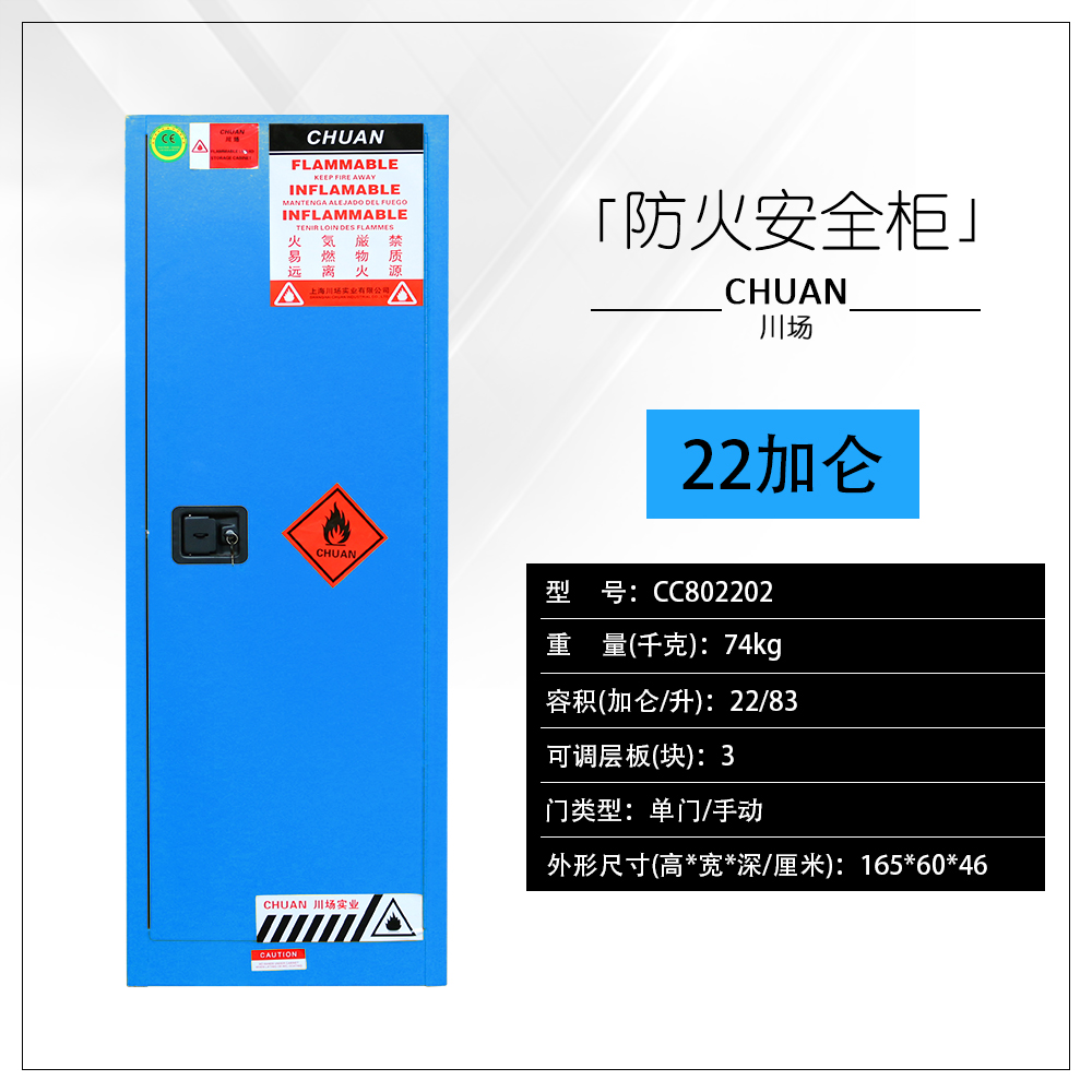◆川場安全柜是參照美國OSHA標準(美國職業安全健康管理局),符合NFPA(美國國家消防協會)第30條規定的要求用于規范存儲易燃易爆液體及危險化學品。(通過歐盟CE認證)