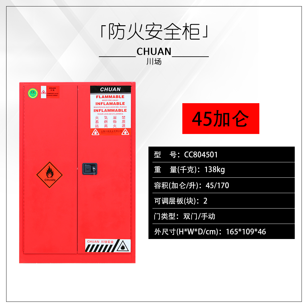 ◆川場安全柜是參照美國OSHA標準(美國職業安全健康管理局),符合NFPA(美國國家消防協會)第30條規定的要求用于規范存儲易燃易爆液體及危險化學品。(通過歐盟CE認證)